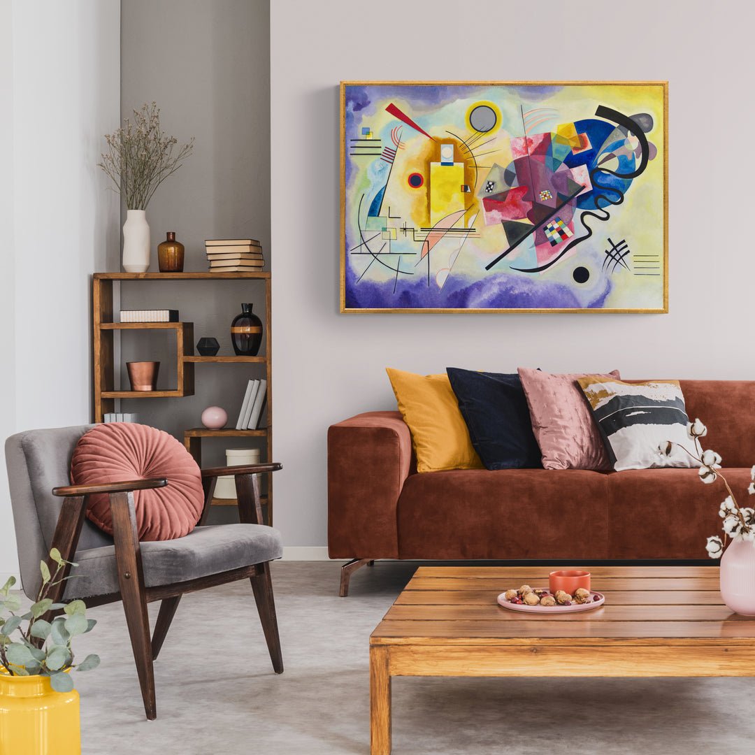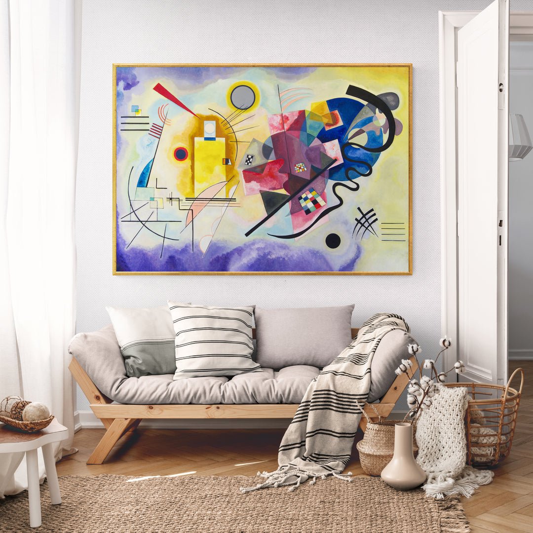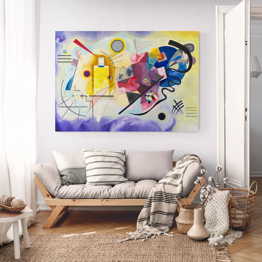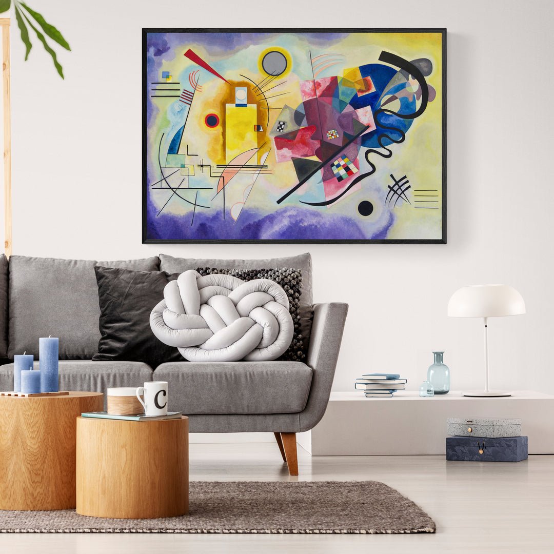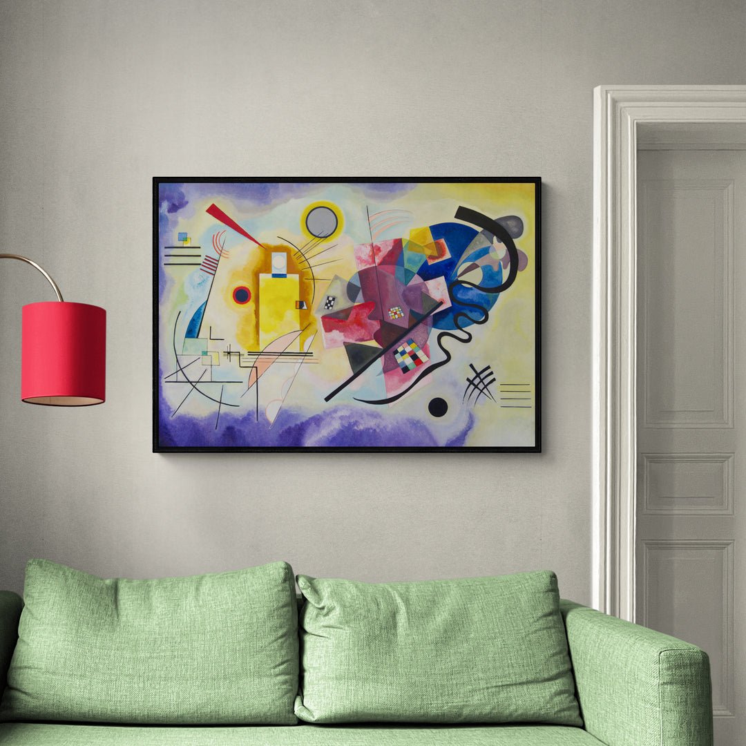 Giallo, Rosso e Blu" di Wassily Kandinskij è un tripudio di colore e forma, un capolavoro dell'arte astratta che trasmette emozioni puramente attraverso la fusione di tonalità vivaci e geometrie ardite. I vibranti toni di giallo, rosso e blu danzano in una sinfonia visiva, evocando un'esperienza sensoriale unica. Le forme si intrecciano, liberando l'osservatore in un mondo di pura espressione artistica. Kandinskij, maestro del non rappresentativo, offre uno sguardo audace nella potenza evocativa dei colori Un'opera che trascende la realtà visiva, invitando una riflessione profonda sull'armonia astratta dei nostri sensi.