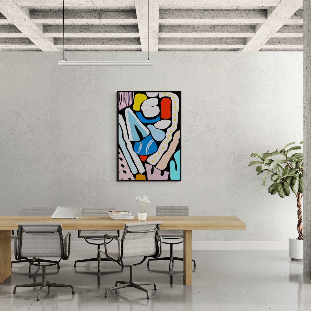 Improvvisazioni Organiche è un'opera che evoca un senso di dinamismo e crescita, come se fosse una rappresentazione visiva di un flusso naturale in continua evoluzione. La composizione sembra essere un intreccio di forme morbide e fluide, ispirate alle strutture organiche della natura che si sviluppano in modo spontaneo e imprevedibile. Le linee si incrociano, si espandono e si contraggono, dando vita a un movimento organico che si sviluppa lungo la tela, creando un gioco tra armonia e caos. Il quadro sembra quasi invitare lo spettatore a interpretarlo in base alla propria percezione di ciò che è naturale, flessibile e vivo. In sintesi, "Improvvisazioni Organiche" rappresenta un equilibrio tra ordine e disordine, un'esplorazione visiva del mondo naturale e del suo incessante movimento.